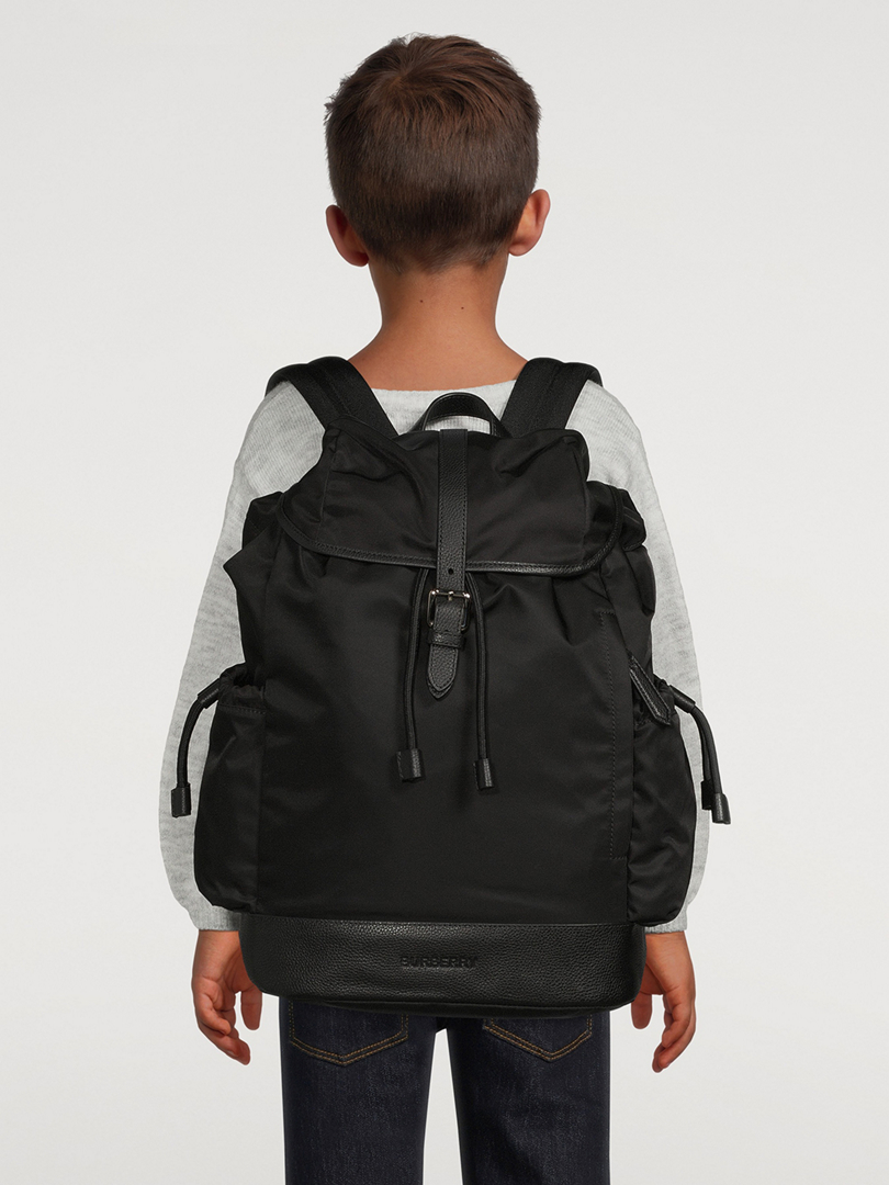 Leather Trim Nylon Baby Changing Backpack In Black Children Burberry Official